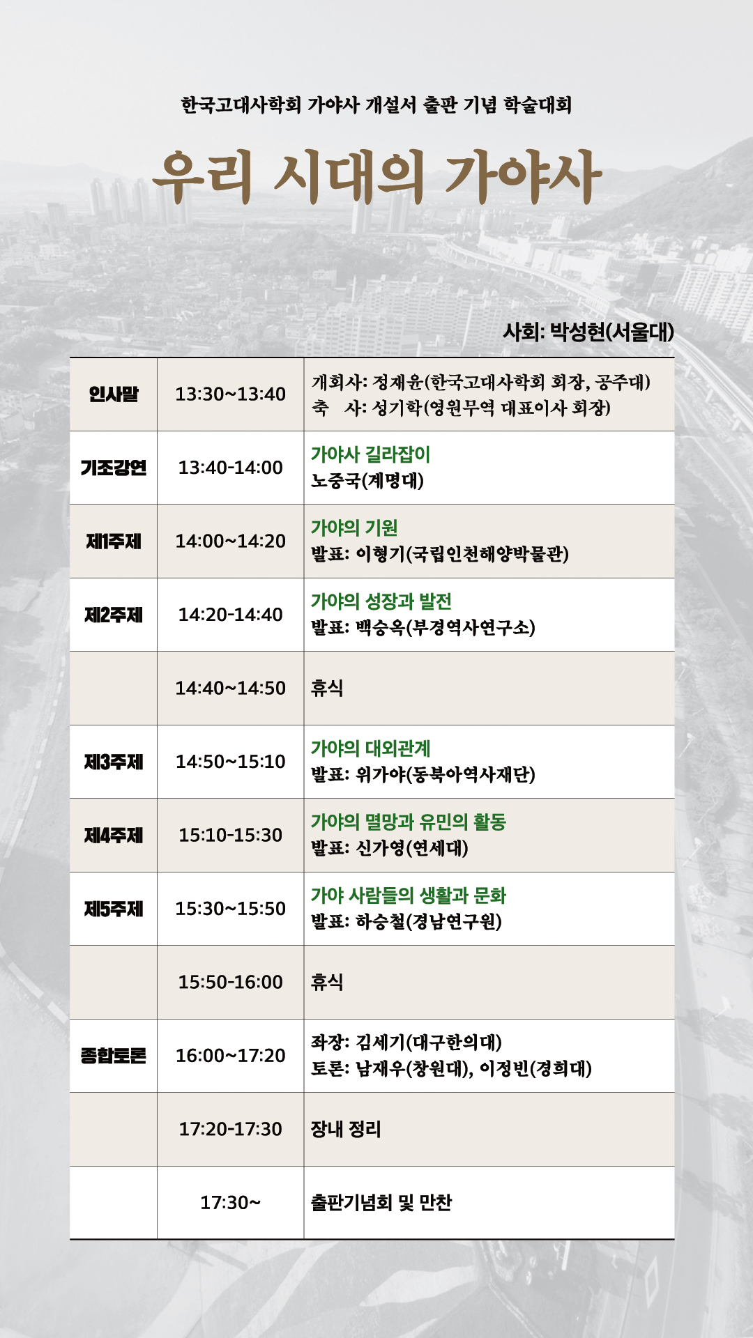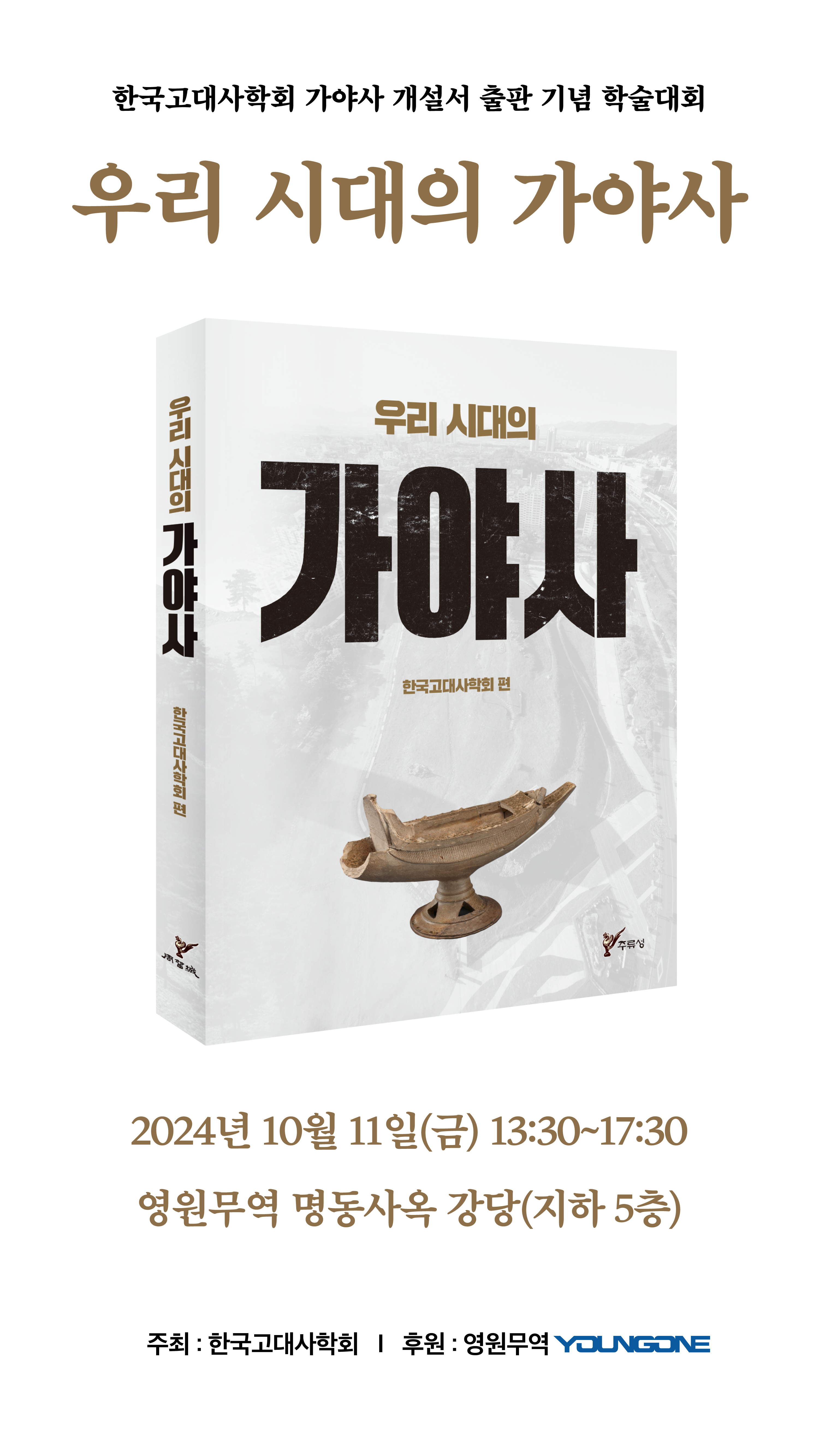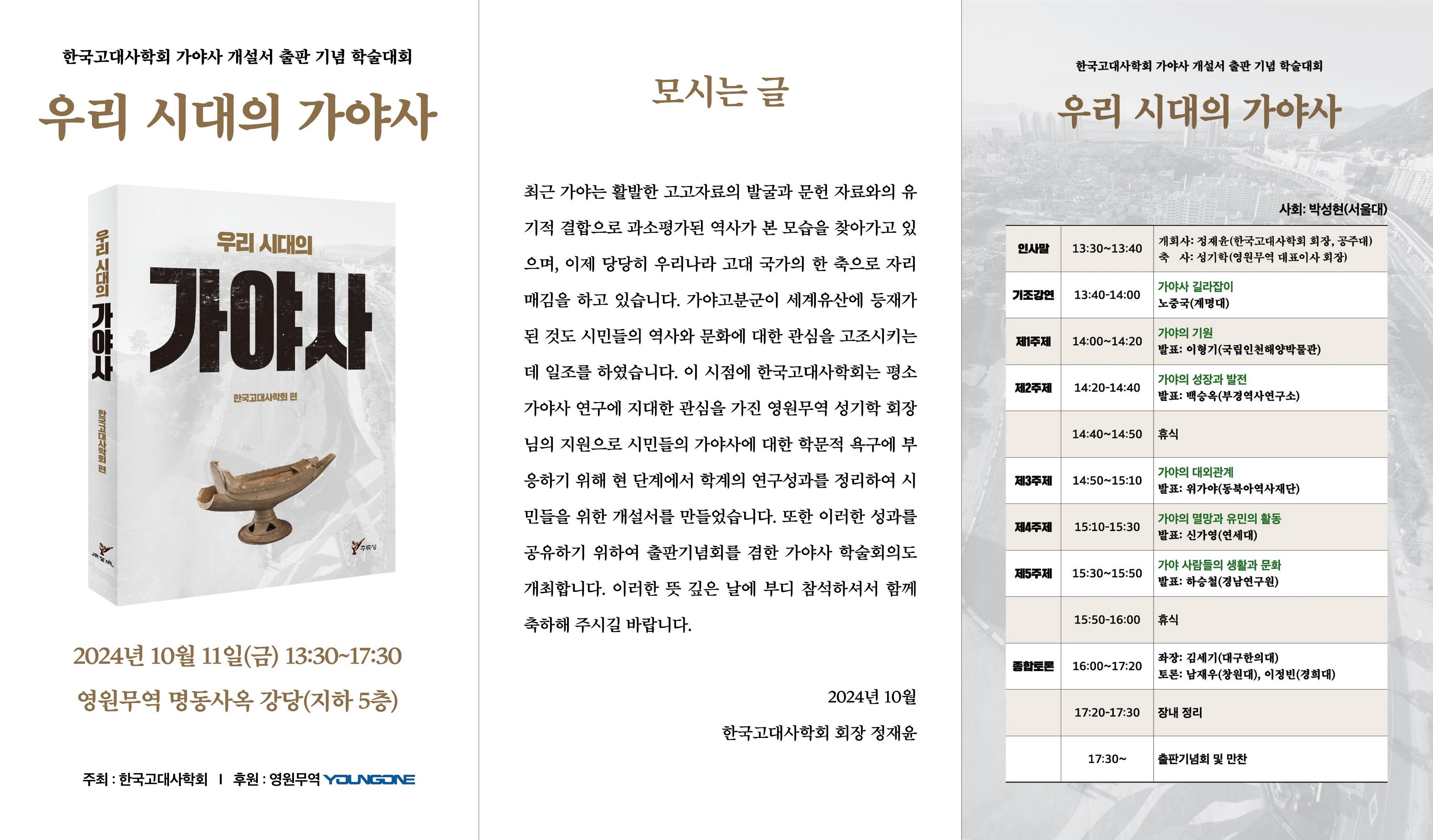 다가오는 2024년 10월 11일(금)에 한국고대사학회 가야사 개설서 출판 기념 학술대회를 개최하고 합니다.