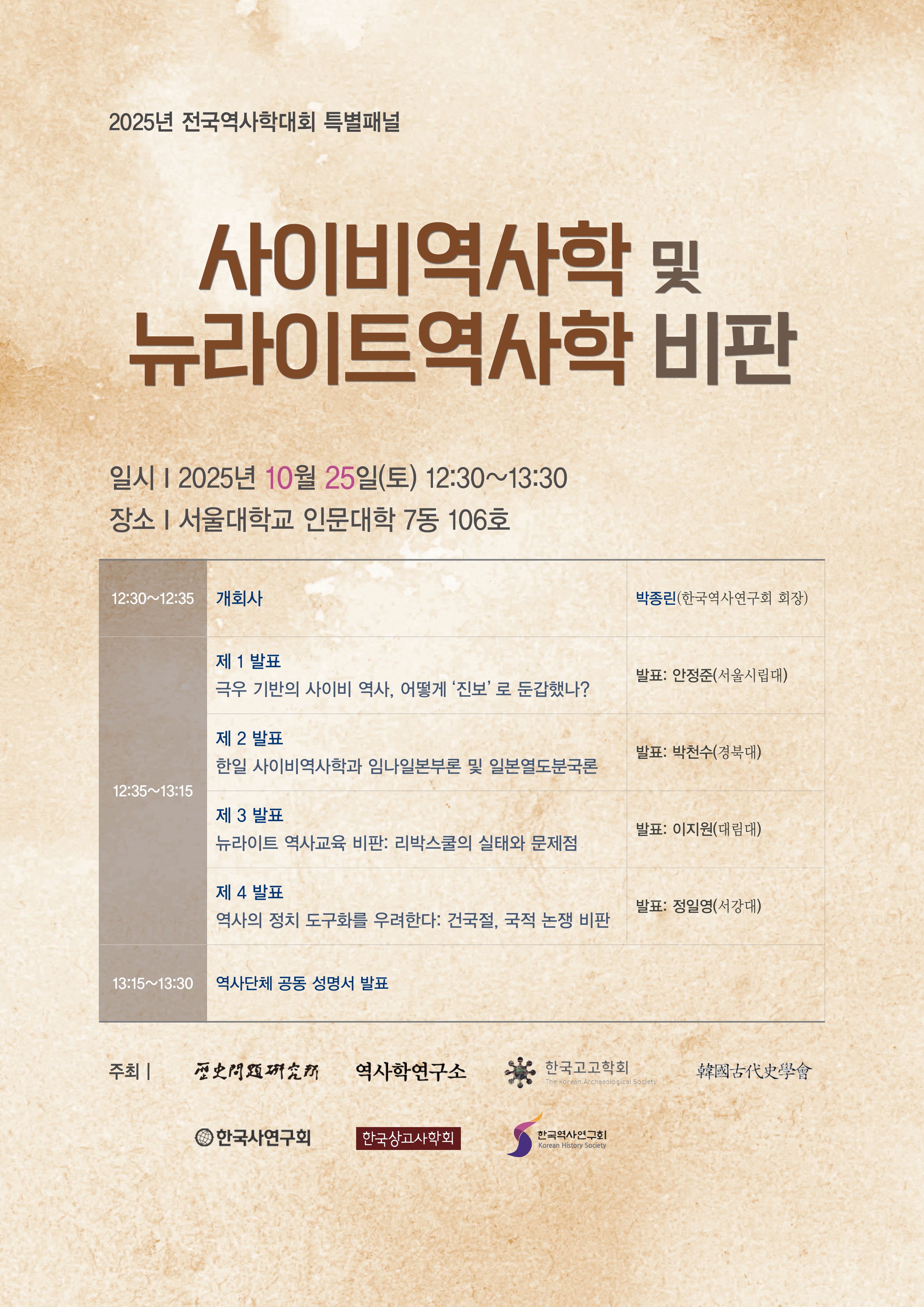 2025.10.25(토) 전국역사학대회에서 고대사학회가 참여하는 특별패널 안내드립니다.