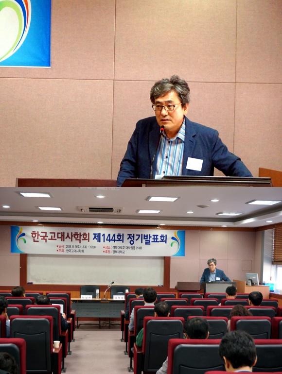 2015년 5월 9일 토요일 경북대학교에서 열린 제144회 정기발표회 때 이강래 회장님의 인사 모습입니다.
