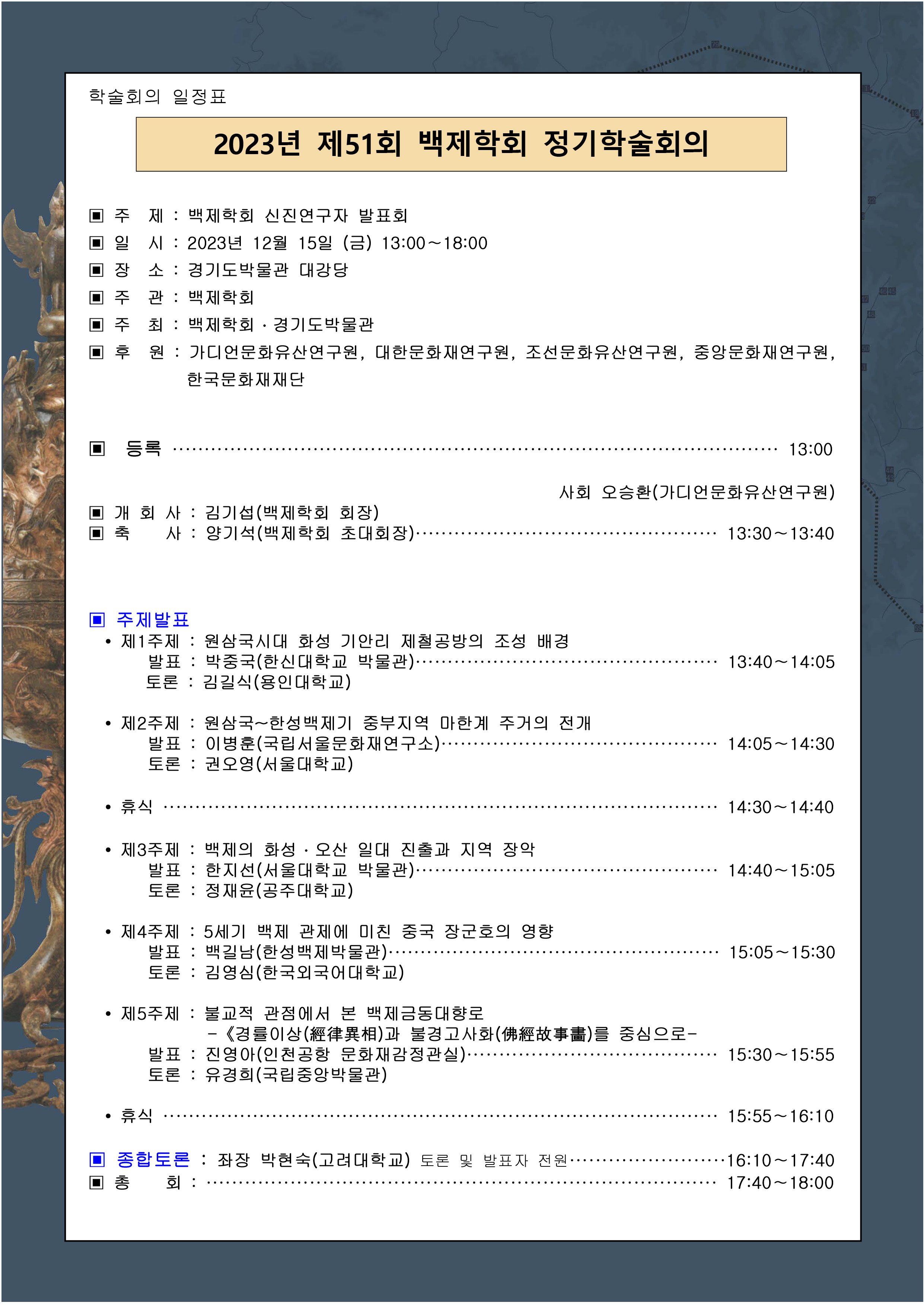 저희 백제학회에서는 12월 15일 금요일